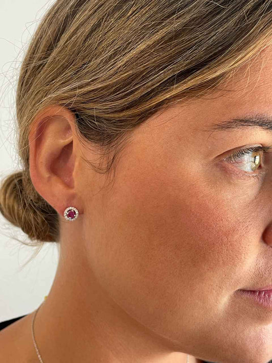 Pendiente GAC oro blanco de 18 ktes centro color rodeado de brillantes