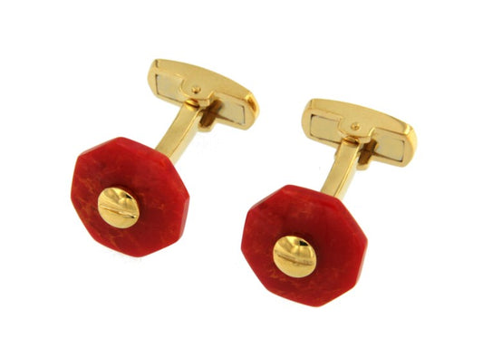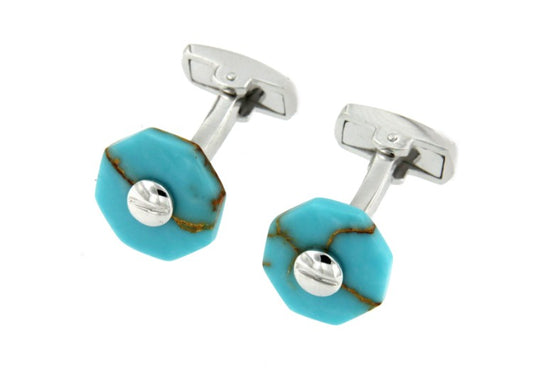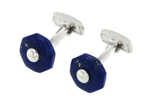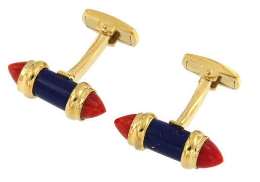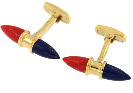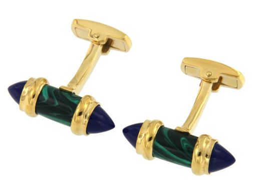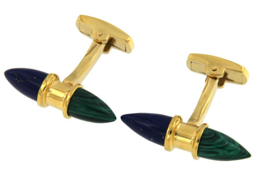 Gemelo de plata dorada con malaquita y lapislázuli.