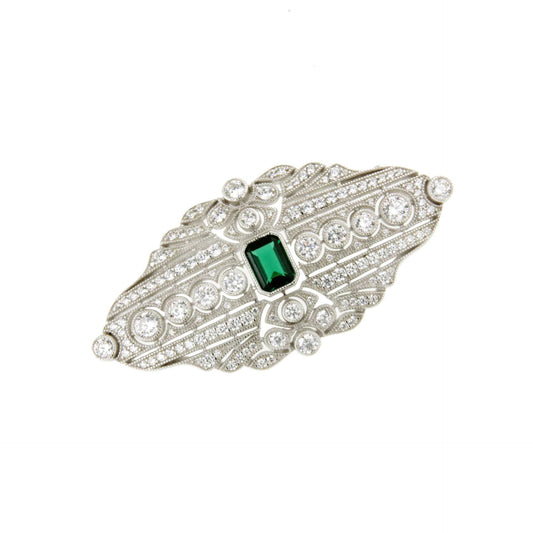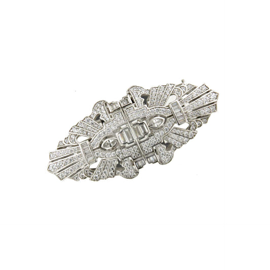 Broche BLEDO tipo art deco en plata 925 ml con circonitas con centro