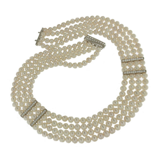 Collar FILIGRANO de perlas chinas con entrepiezas de plata y circonitas