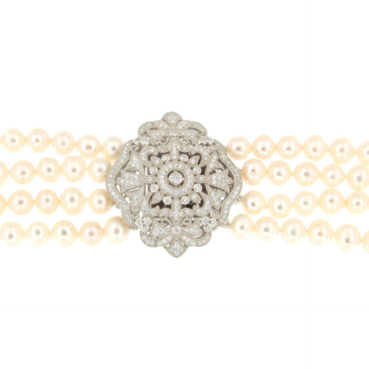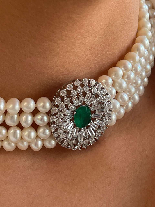 Choker TEODORA de perlas chinas con centro de plata y circonitas.