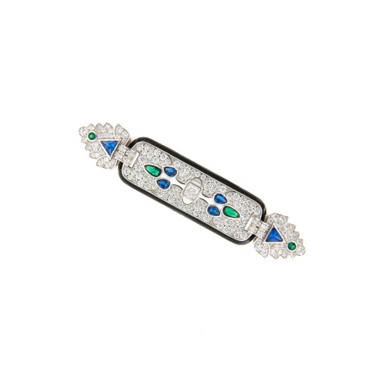 Broche maravilloso LISBOA art decó de plata 925 ml con circonitas esmeraldas