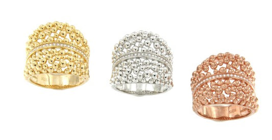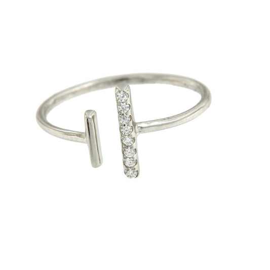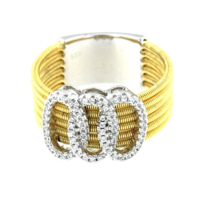 Anillo de plata con baño de oro semiabierto con circonita y cuarzo