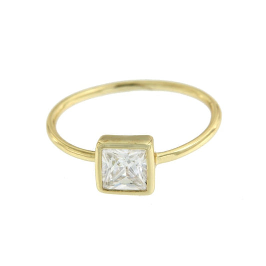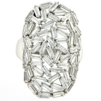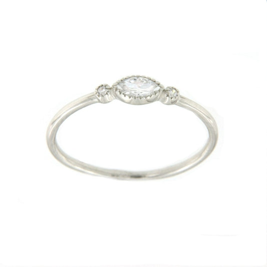 Anillo fino de plata chapada o rodiada con circonita ovalada
