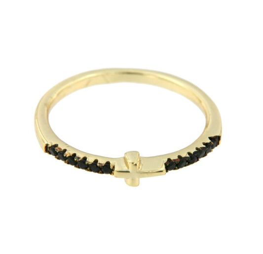 Anillo de plata con baño de oro y herradura engastada en circonita
