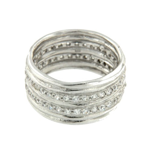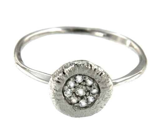 CRISANTEMO, anillo de plata rodiada con circonitas.