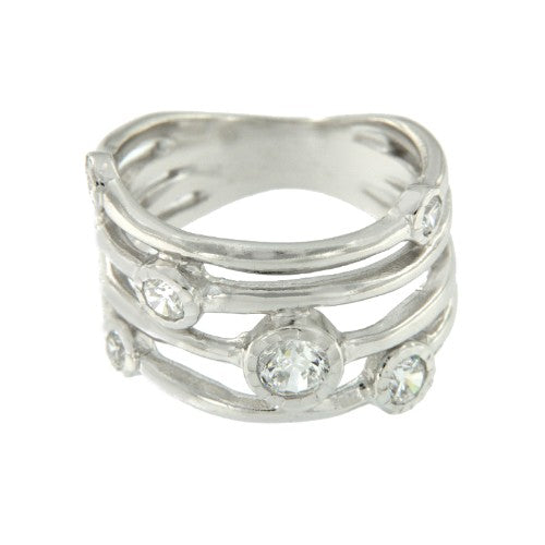 BOCCACIO, anillo de plata con circonitas en 3 bandas.