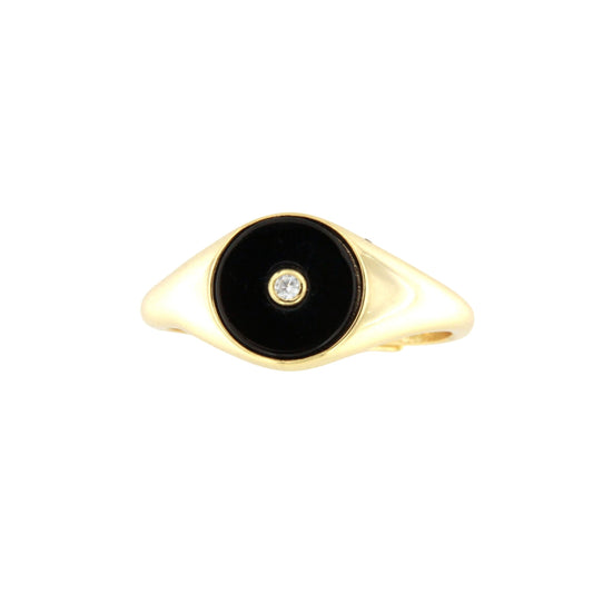 Anillo fino en plata chapada con círculo y circonita blanca