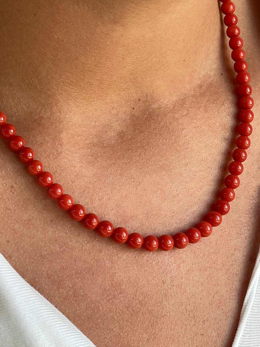 Gargantilla COMPAS de bolas de coral engarzados con cierre oro 18 ktes