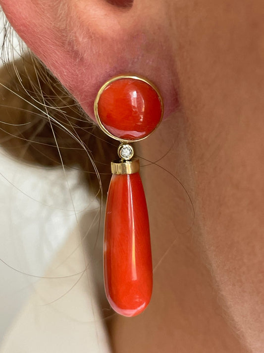 Pendientes GRANA desmontables de coral en oro amarillo de 18 kilates
