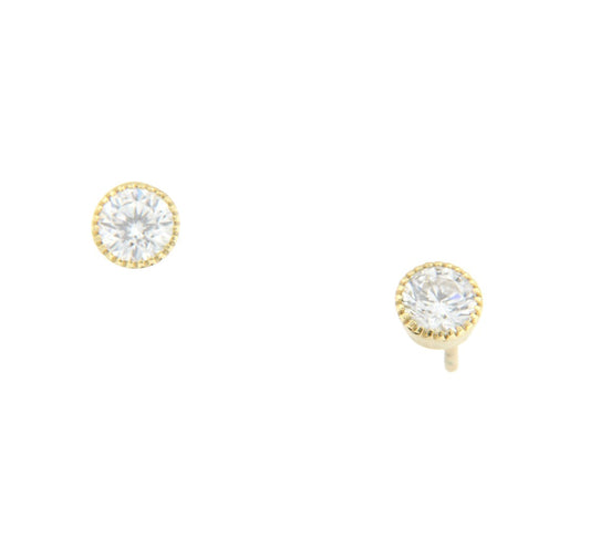 Pendiente TREV solitario circonita de plata de ley con baño de oro