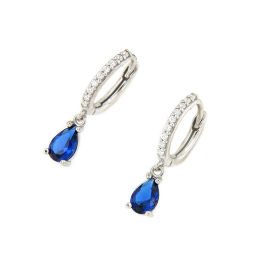 DRANCY pendientes largos brillantes y zafiros en oro blanco 18 Kts