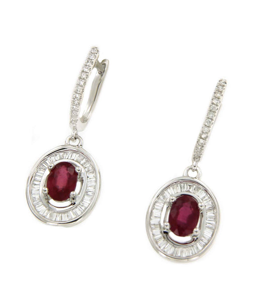 BALABAN pendientes Rubies en oro blanco baguettes y brillantes