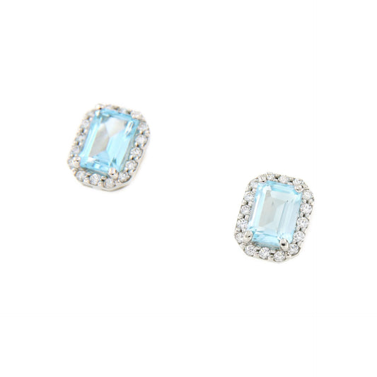 Pendientes SEMA oro blanco con circonitas y centro aguamarina