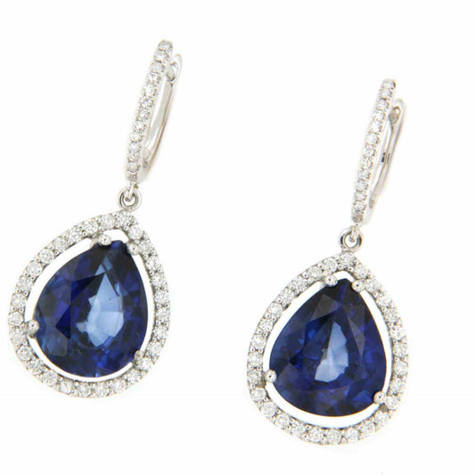 SERVET pendientes zafiro y brillantes colgantes oro blanco 18k