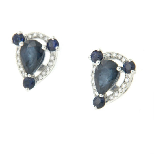 Pendientes cortos de oro blanco con diamantes y zafiros
