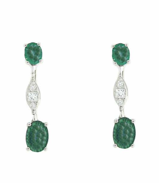 Pendientes SERMIN de oro blanco con brillantes y esmeraldas