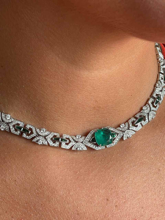 Gargantilla DUNA en plata de 1º ley con circonitas y cuarzo esmeralda