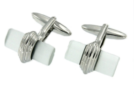 DEVOTO-A steel and leather bracelet with 3 white bands and cylinder.
