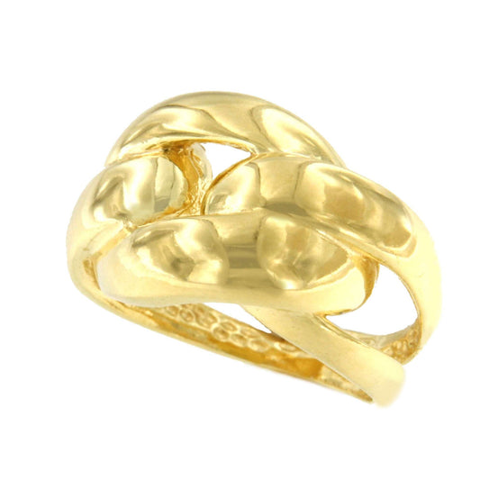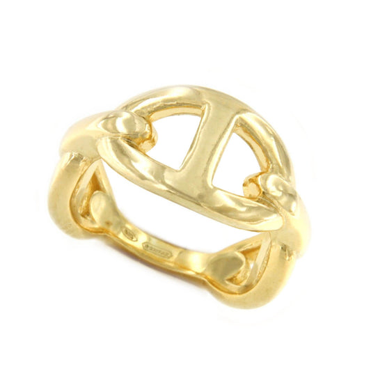 ERNANI wide link ring, ship design, sterling silver plated in gold