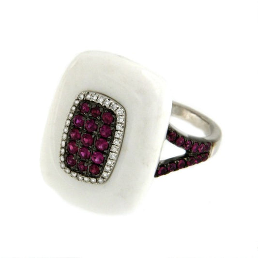 SERPA wide ring in rose gold, rose quartz, and diamonds