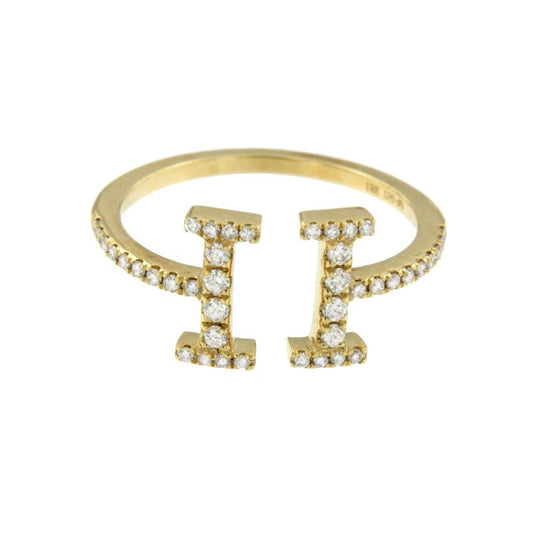 KIZOMBA, yellow gold ring with onyx and amethyst
