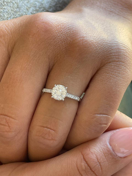 NANCE solitaire ring with diamonds in 18-karat yellow gold