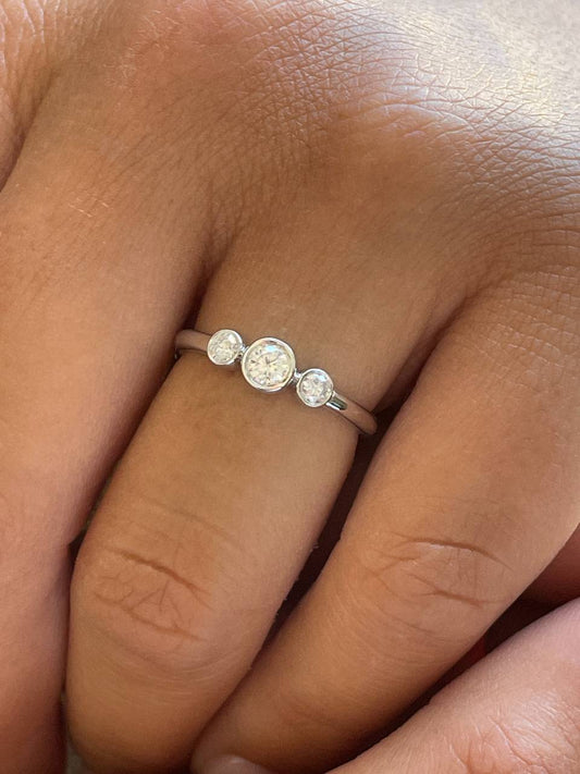 FEIJOA ring with three brilliant-cut diamonds in 18k white gold