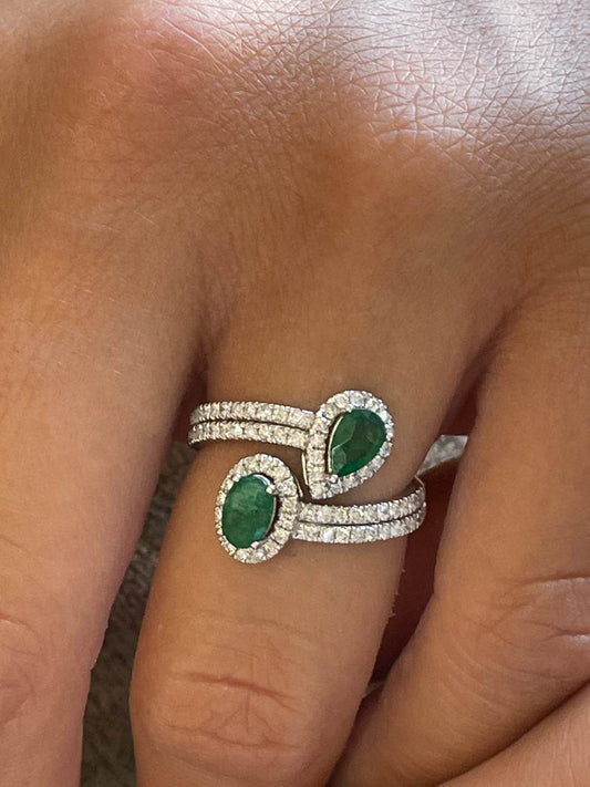 NONI ring, you and me, with emerald and diamonds in 18k white gold