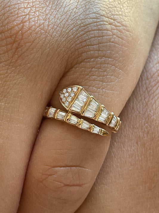 PLATANO snake ring in 18k rose gold with diamonds and baguettes