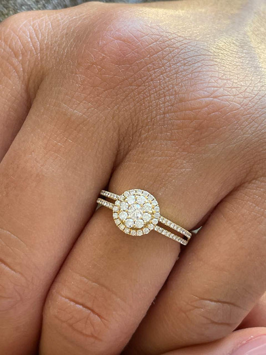 MADROÑO ring with center and border of diamonds in 18k yellow gold