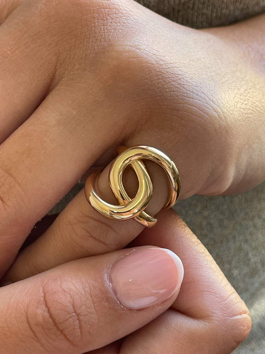 Lucuma ring in 18k yellow gold, knot shape, you and me