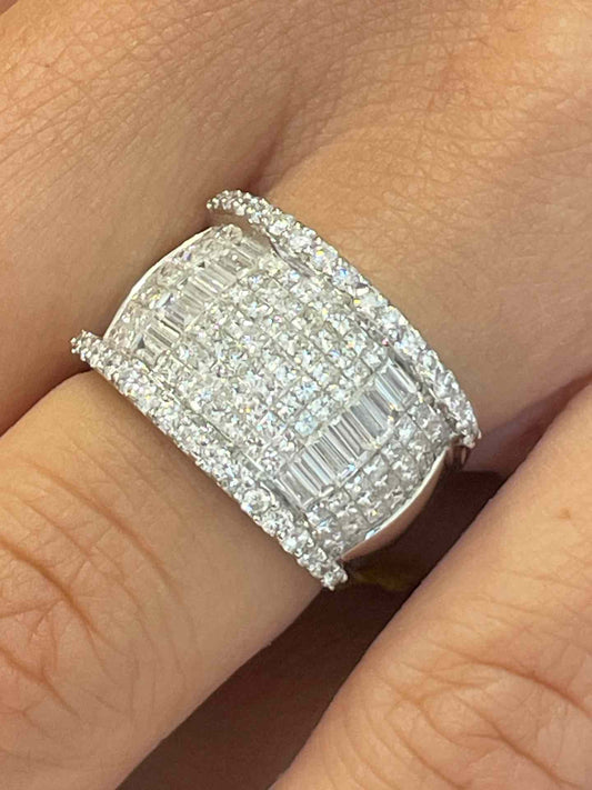 GUILLENA ring in 18k white gold with diamonds, baguettes and princesses.