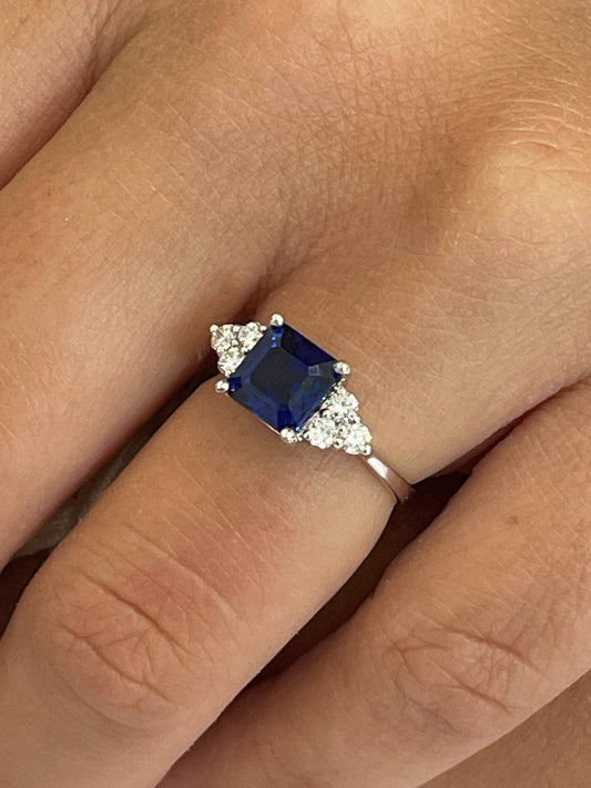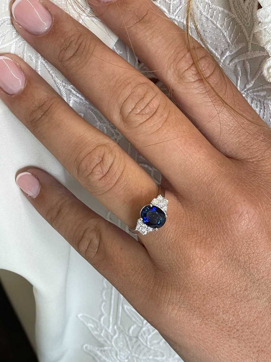 NOIA sapphire ring with diamonds in 18k white gold.