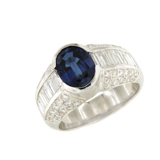 REIMS ring in 18k white gold with sapphire, diamonds and baguettes