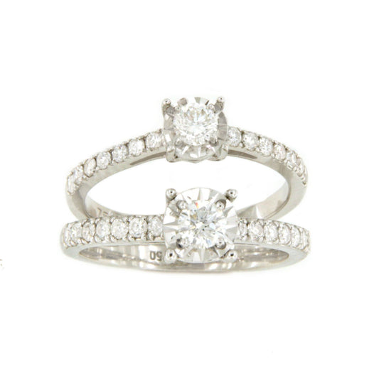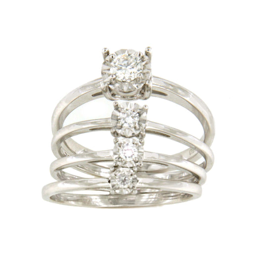 CASTRES solitaire ring with brilliant crossed band in 18k white gold