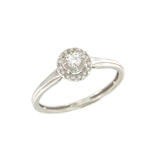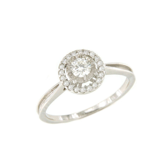 BASTIA solitaire ring with diamond halo in 18k white gold