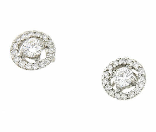 FERRARA solitaire earrings surrounded by diamonds in 18k white gold