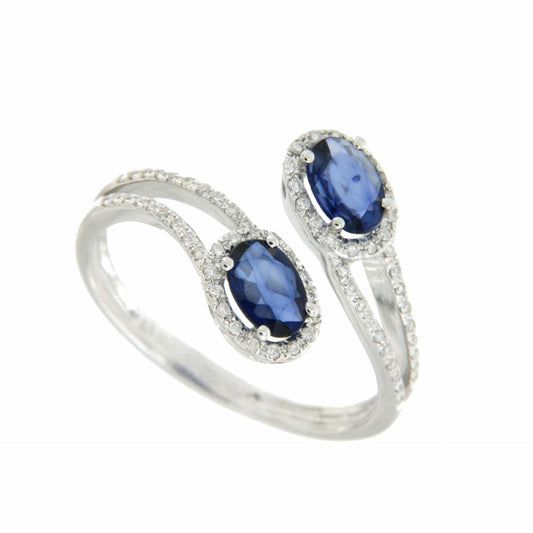 CARIQUEO 18k gold round ring with diamonds and sapphire accents
