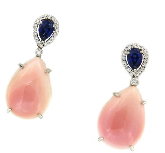 BERRAK detachable white gold earrings with diamonds and sapphires, emerald or ruby