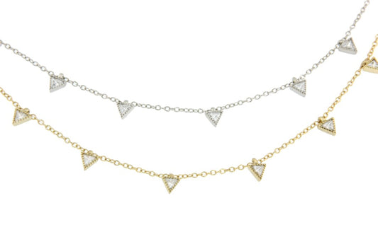Silver chain, gold plated or rhodium plated, and triangle with cubic zirconia