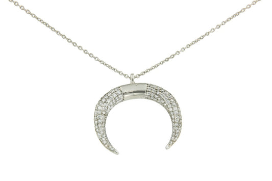 Silver choker for parties with crescent moon and cubic zirconia