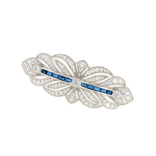LETICIA art deco brooch in 925 sterling silver with sapphire cubic zirconia