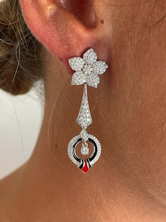 Long, detachable SNAKE earrings in silver with art deco cubic zirconia