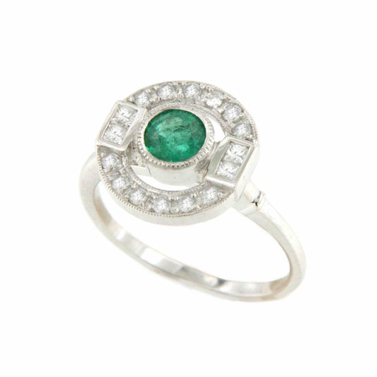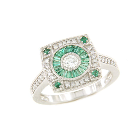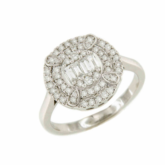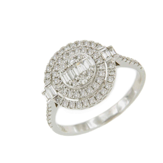 TOMASA ring with round center baguettes and diamonds in white gold