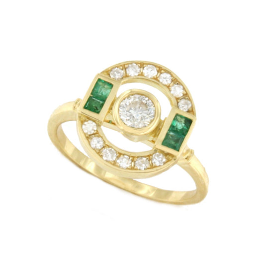 Talador ring in 18k gold with emerald cut center and baguettes