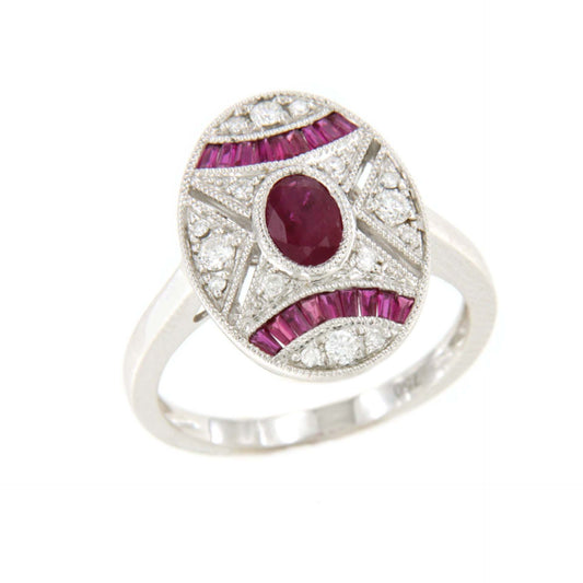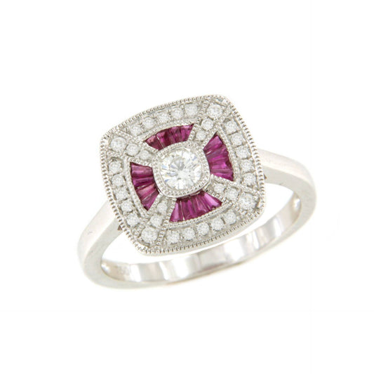 ANIS ring in 18k white gold with diamonds and ruby accents