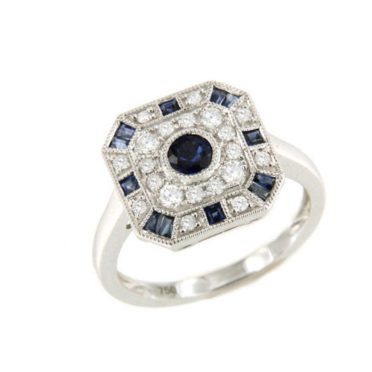 Zebra ring in 18k white gold with diamonds and sapphire in art deco style