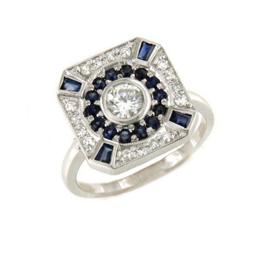 CLERMONT-FERRAND ring in 18k white gold with sapphire and diamonds.