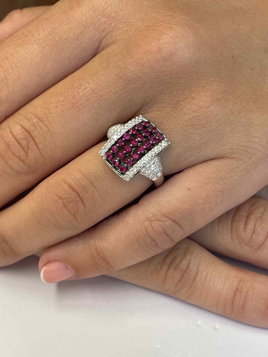 MANZANARES ring in 18 karat white gold with rubies and diamonds.